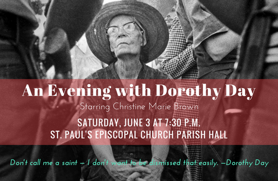 By the way, Christine Marie Brown will star in a special performance of "An Evening With Dorothy Day" at my very own church — St. Paul's Episcopal in Seattle — on Saturday, June 3. If you're in town, don't miss it.