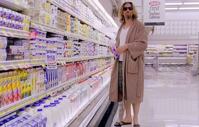 On a side note, while I don’t see anything as simplistic as a “Christ figure” in the Coens’ films, I do love the way some have speculated that “The Dude” himself is a “holy fool” who acts as a sort of signpost toward Jesus. We see him doing carpentry (badly). We see him “taking it easy for all us sinners.” He walks around in a robe, and hangs out with all manner of fools and crooks without an inclination toward judgment. He even bowls alongside a “false Christ” (“The Jesus”). And what does he drink at the grocery?