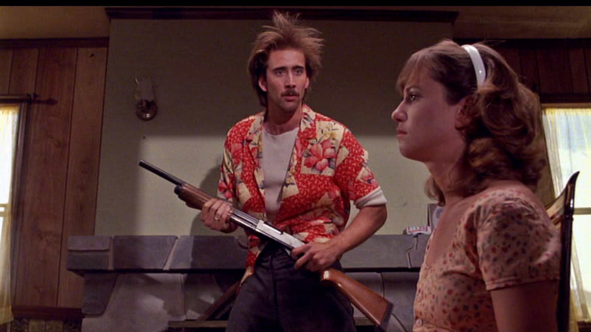 Raising Arizona’s H.I. has the Lone Biker, who greatly resembles Sheriff Bell’s nemesis in No Country for Old Men — Anton Chigurh. Both are lone figures of chaos, wrath, death, and judgment, prone to blasting “the little things” (bunnies, birds) and the innocents. In fact, there are shots of H.I.’s troubled sleep, in which he dreams of apocalyptic things, that mirror Llewelyn’s troubled sleep after he brings the money home in No Country. There are strong connections between H.I. and Llewlyn, fools-in-arms right down to the way that their stolen goods drag them down into much darker and more frightful trouble. The allure of “what other people have” — money, a family, power, fame — is the pathway to hell for so many Coen characters.