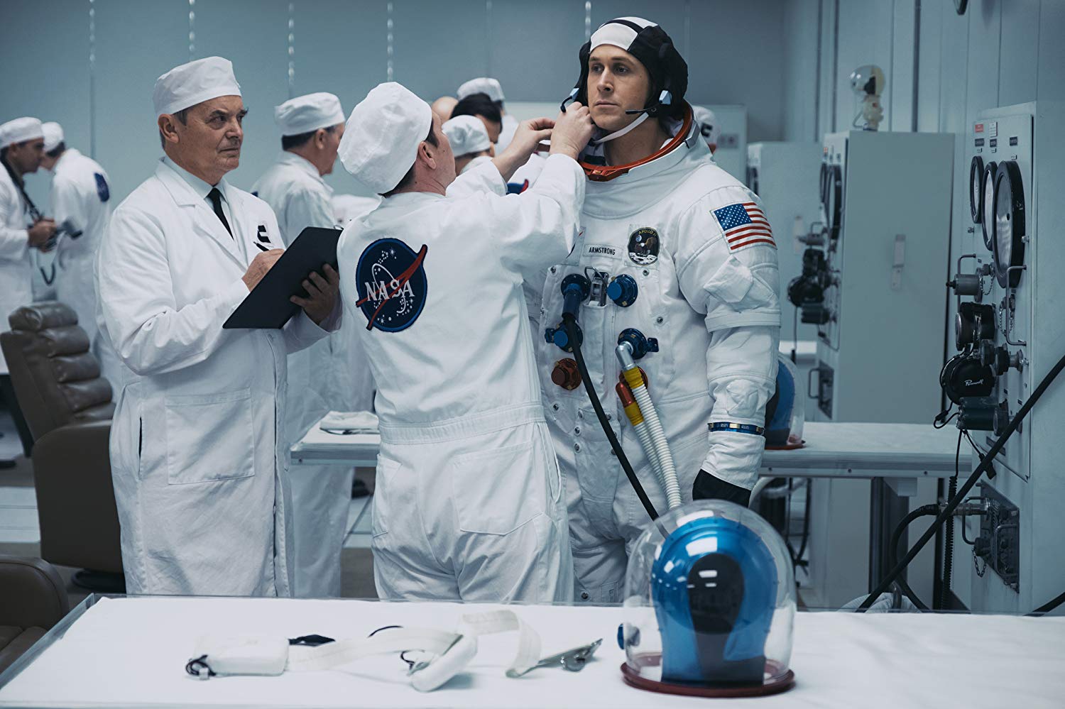 The Whiplash drummer Andrew makes a Faustian bargain, alienating his loved ones in his quest to overcome obstacles and achieve one taskmaster's definition of excellence. In La La Land, Mia makes a "Mia-first" commitment, losing love in pursuit of success. In First Man, the stakes are just that high, but the motivations are more mysterious.