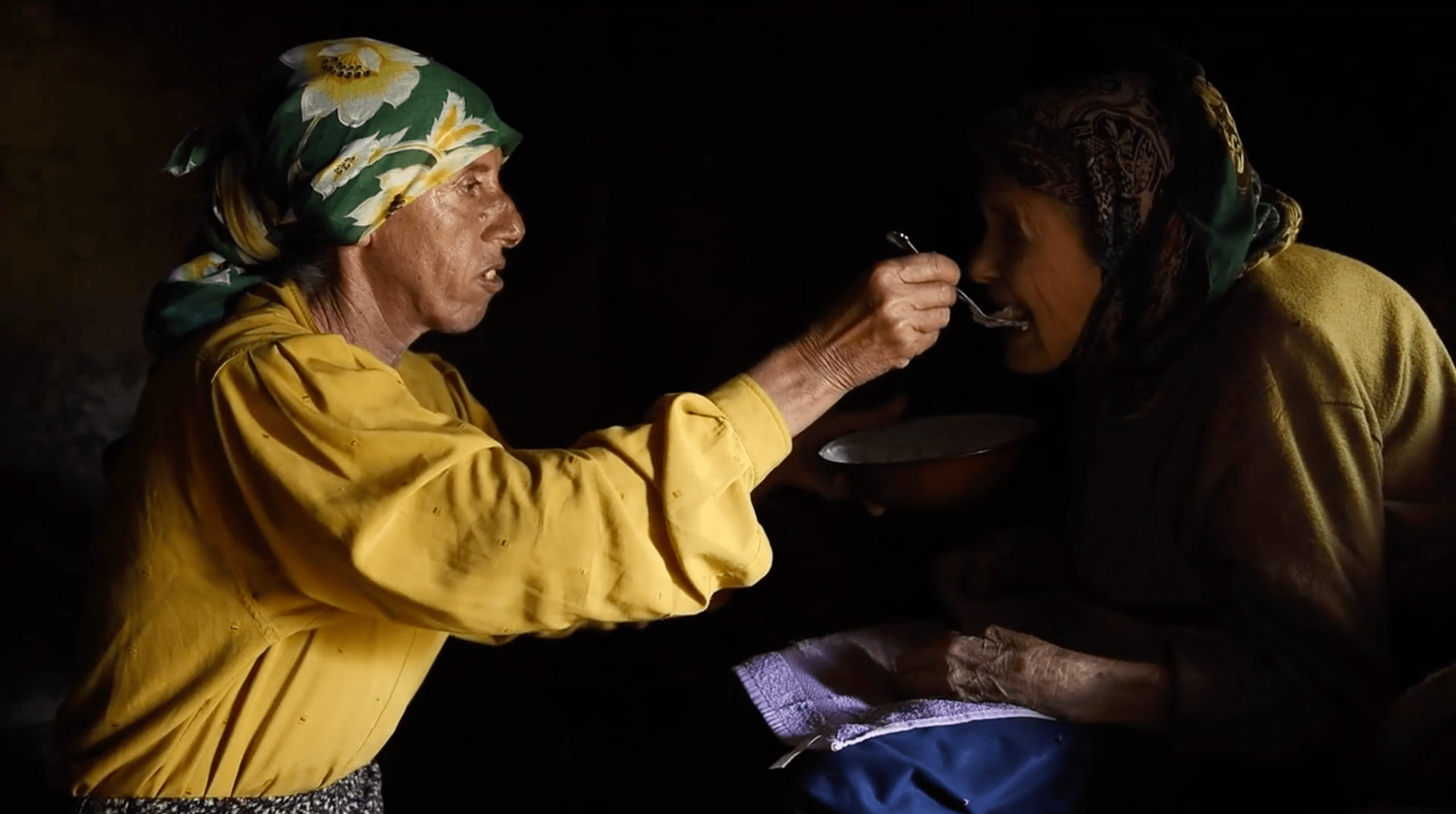 It's a good thing that she's found her calling: She and her elderly, house-bound mother Nazife, living in the wild more than ten miles from the nearest city (the Macedonian capital, Skopje), are dependent on the income from that rare, raw honey. And Nazife is blind and completely reliant on her daughter's care and earnings. I would be hard-pressed to think of any other mother–daughter relationship I've seen on a screen that is as intimate as this one. Nazife is as striking a physical presence as the grandmother in Sajiyat Ray's Pather Pachali, kept alive by Hatidze's honey and by her love (which seem symbolically synonymous), even as each day seems to pose more challenges to her health and spirit than most human beings could withstand.
