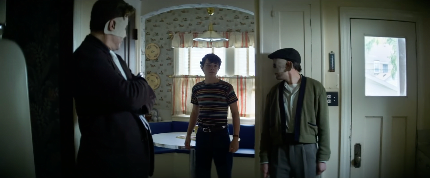 The less said about this story the better — there's a lot of pleasure to be found in connecting many mysterious dots. Suffice it to say that it's 1954, and Jones (Brendan Fraser doing his best best Orson Welles) — rounds up three accomplished crooks who sniff at each other like dogs that can't get along. There's Curt (Don Cheadle) who is fresh out of prison and well aware that he's marked for death; there's Ronald (Benicio Del Toro), a man of dubious judgment — which is immediately clear as we meet him having an affair with a mob boss's wife (Julia Fox); and then there's Charley (Keiran Culkin), an aggressive, violent wildcard who takes the lead in a job so full of secrets that everybody's nervous. They're tasked with holding hostage the family of Matt (David Harbour) until Matt retrieves an important document from the safe at his workplace. What is it? It'll be a while before we find out. And when we do, we see the truth dawning on the crooks that they've been drawn into deeper and more dangerous waters than they anticipated.