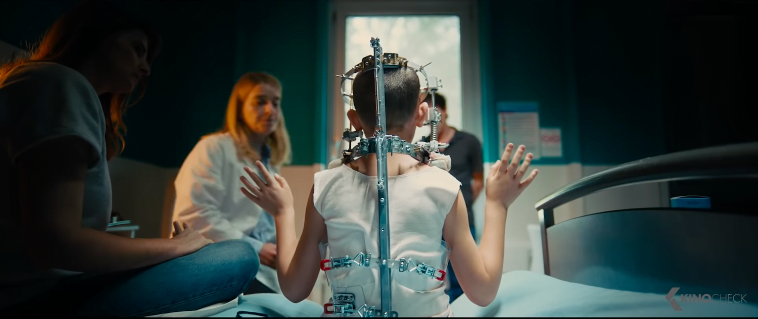 First, we have the growing-up of a girl named Alexia (Adèle Guigue), who is strangely (inexplicably, really) obsessed with automobiles. This is true even before she's in a car accident that results in surgeons implanting a metal plate in her head. Later, as a grown woman (Agathe Rousselle), she's drawn to motor vehicles sexually — yes, sexually — and to such psychotic extremes that anyone who disrupts her obsessions is likely to end up impaled on the knitting needle that she keeps sheathed like a samurai sword in her hairdo.