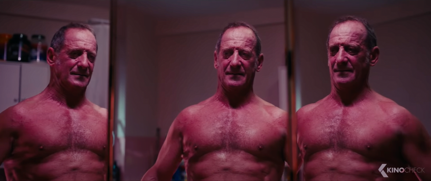 Second, we have Vincent (Vincent Lindon), the commander of a squadron of firefighters and the father of a long-missing boy named Adrien. The crisis has probably influenced his leadership; the men of his muscular brigade regard him with a mix of fear, incredulity, and humor. Driven to distraction, he enjoys losing himself in their trance-like dance parties. Worse, he has become addicted to some kind of drug that reinforces or amplifies aspects of his masculinity — perhaps to help him compensate for the sense of powerlessness that stems from his irreparable loss.