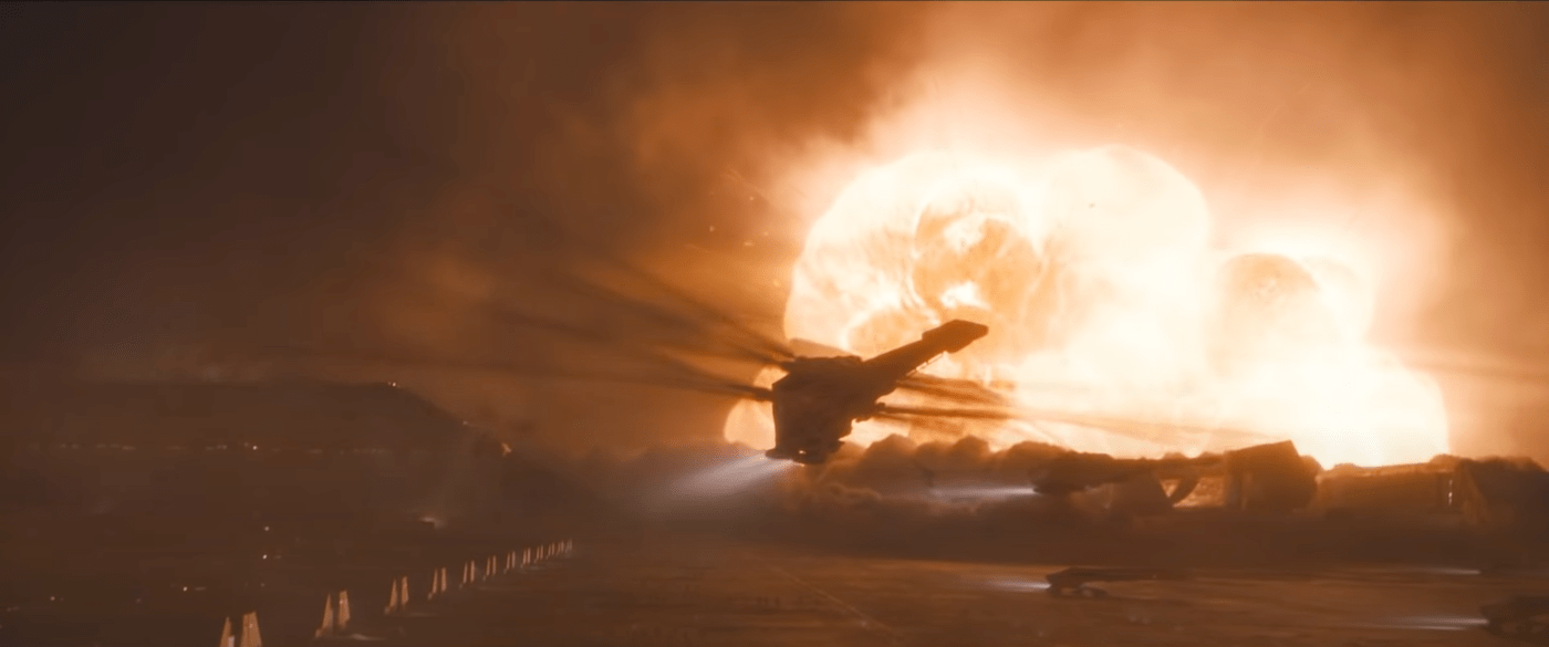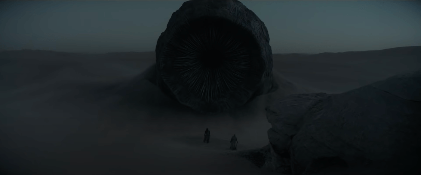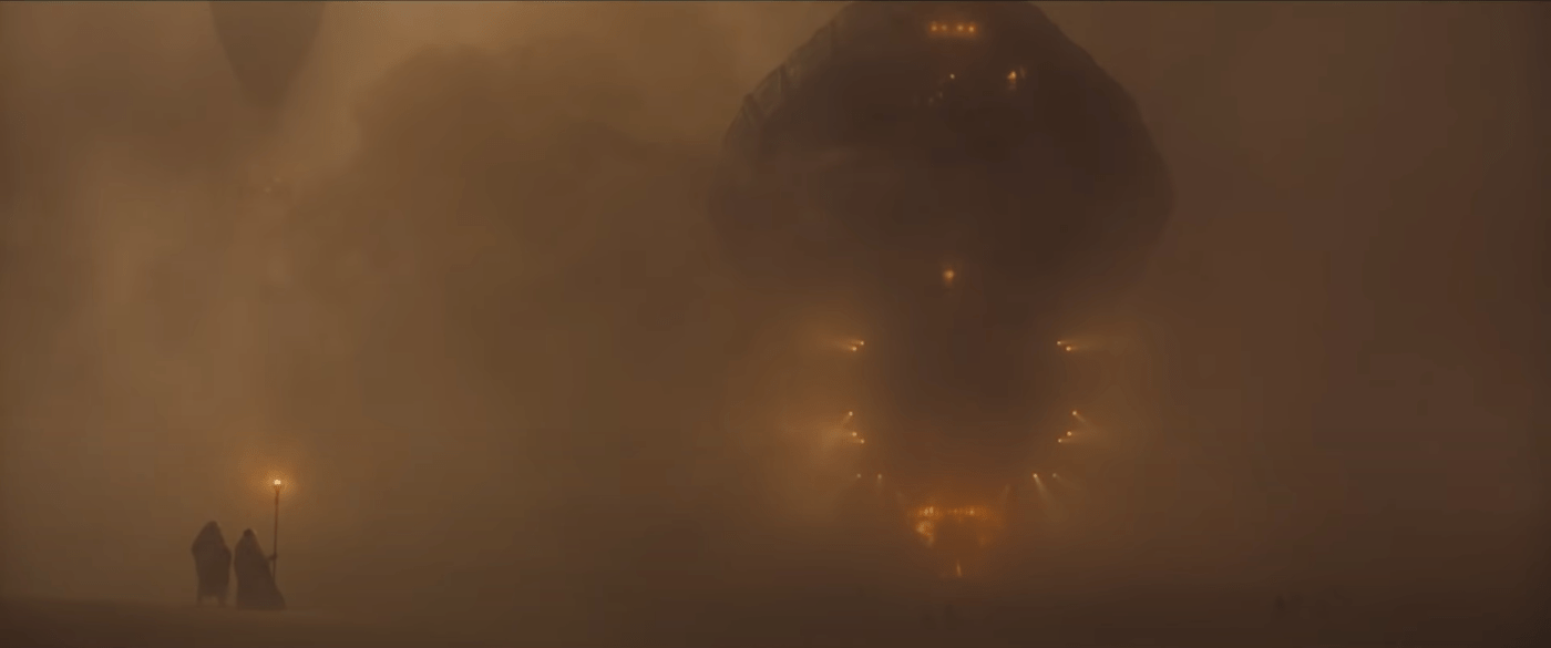 [Villeneuve's] adaptation trades the intimacy of interpersonal relationships and internal dialogue for overwhelming visual scale: massive ships overshadowed by even larger ones, clustered above the curve of a planet’s atmosphere; immense armies arrayed in the hulking shadows of space cruisers; the fury of dust kicked up by a sandworm half a kilometer long as it cruises through the desert.