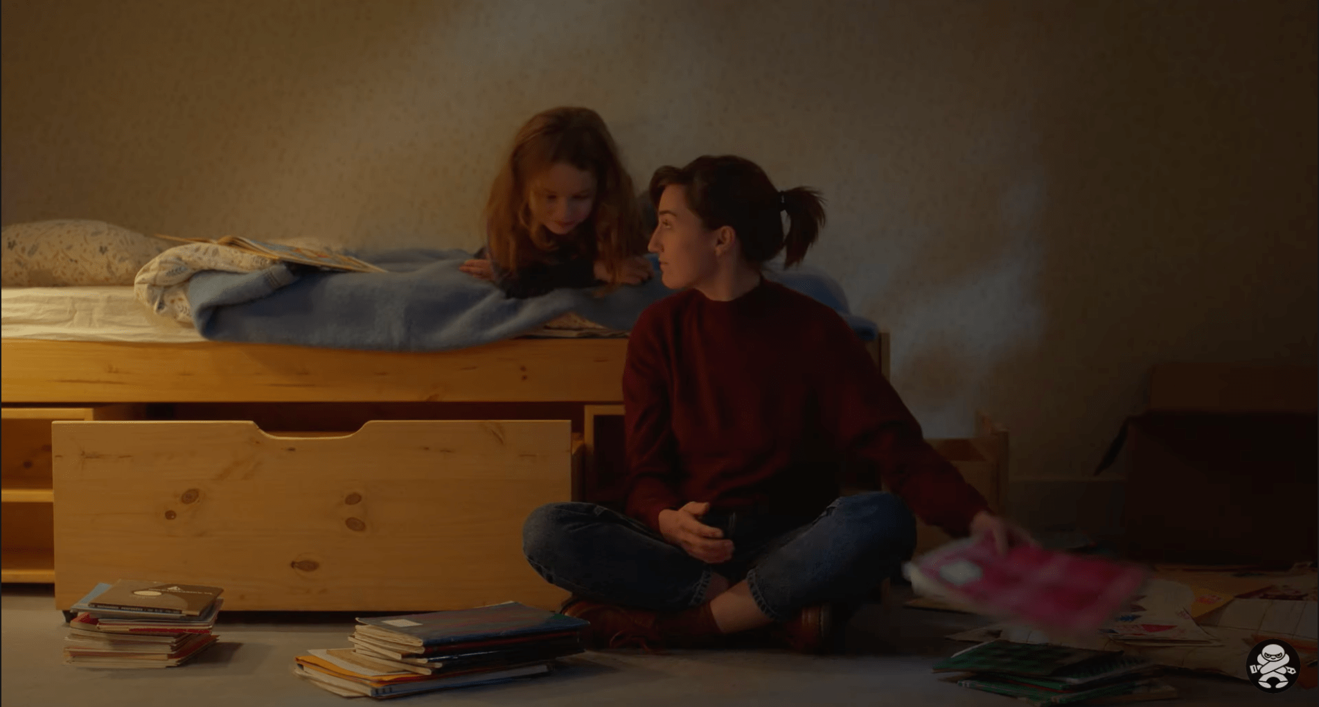 Petite Maman — which, if I have any reliable memories from my high-school French lessons, must mean "Little Mother" — follows young Nelly (Joséphine Sanz) and her mother Marion (Nina Meurisse) out into the woods to the house of the one they have recently lost: Nelly's grandmother, Marion's mother. In the haunted quiet of that house — one visited by gentle apparitions of reflected light that would have pleased Kieslowski — Nelly struggles to accept that she did not give her grandmother a proper goodbye. And Marion, who seems to be melancholy by nature and now must contend with deep grief, has things to work out as well.