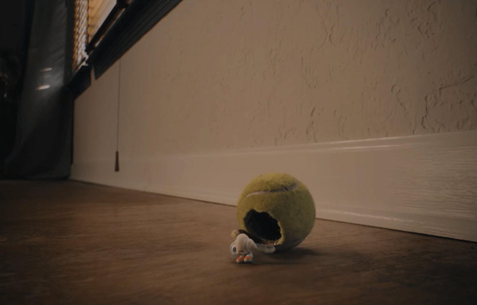 To infuse all of this with such love and such conscience, well — that reminds me of a filmmaker I rarely ever mention when describing great filmmakers. Marcel is the kind of film that I suspect Jim Henson would have loved: It's childlike, playful, hopeful and wise — and all of this without ever stooping to sentimentality. Its characters seem to have been brought to life with patience, attention, and love. Whether Marcel is navigating the house by steering his tennis ball "rover" down the stairs, climbing the walls with the help of honey on the soles of his shoes, zip-lining in an old sneaker, or sleeping on a soft slice of bread, walking his "dog" (a piece of lint on a leash), or just wondering about the wide world beyond his AirBnB, he's always exactly right — a fully realized character.