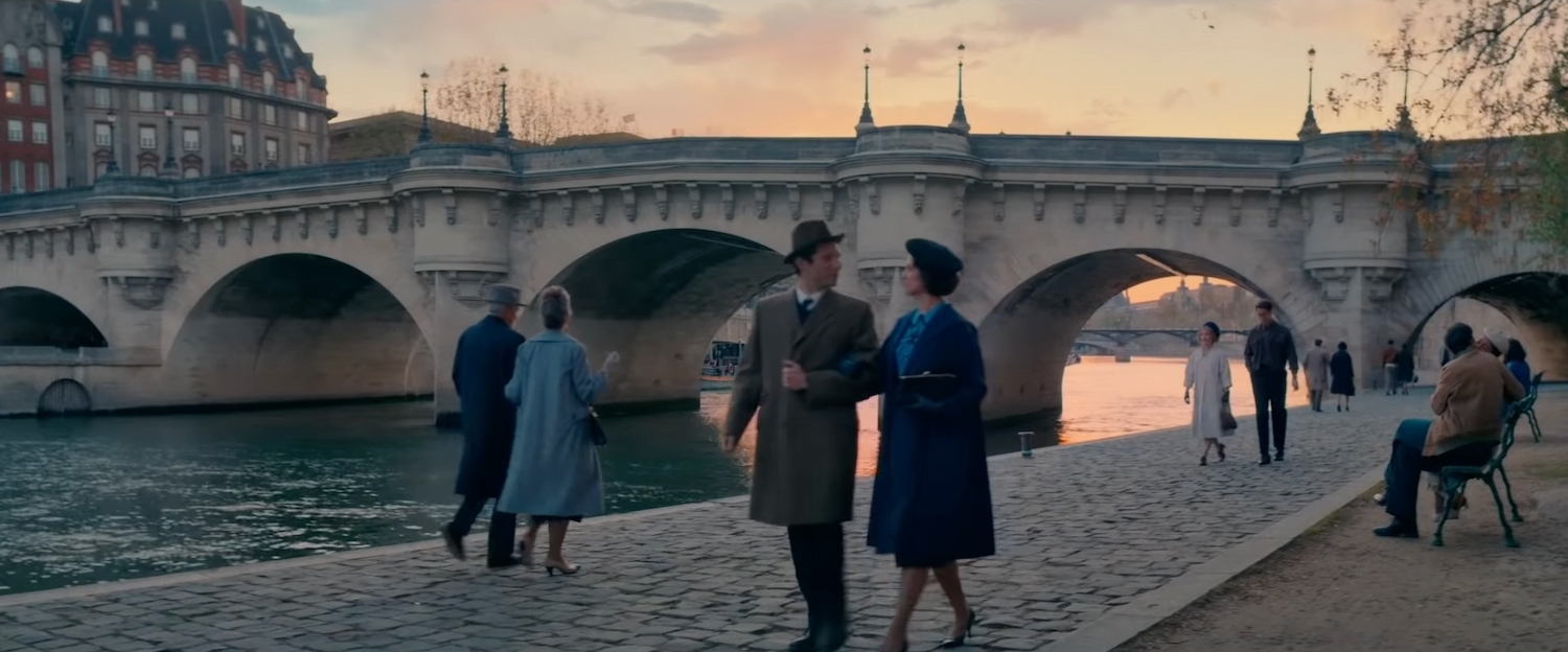 Another challenge to the viewer is the version of Paris on display here. If you saw Edgar Wright's Last Night in Soho, you saw a young woman suckered into a nostalgic vision of Paris, and then she paid the price by discovering that if you scratched those fantasies you'd expose horrific corruption festering under the skin. This movie insists on the idealistic fantasy, acknowledging real problems only as troubles that can be overcome as easily a puffing seeds off a dandelion. There’s not a spot in this film's Paris that hasn’t been polished to avoid offense. Come to think of it, it's like a Paris version of that pop-up book of London that figures largely in Paddington 2. This tourist's fantasy of the city so resolutely ignores — denies — any significant flaws, injustices, or dark sides that you’ll wait for Mrs. Harris to wake up and learn it’s all been a dream.