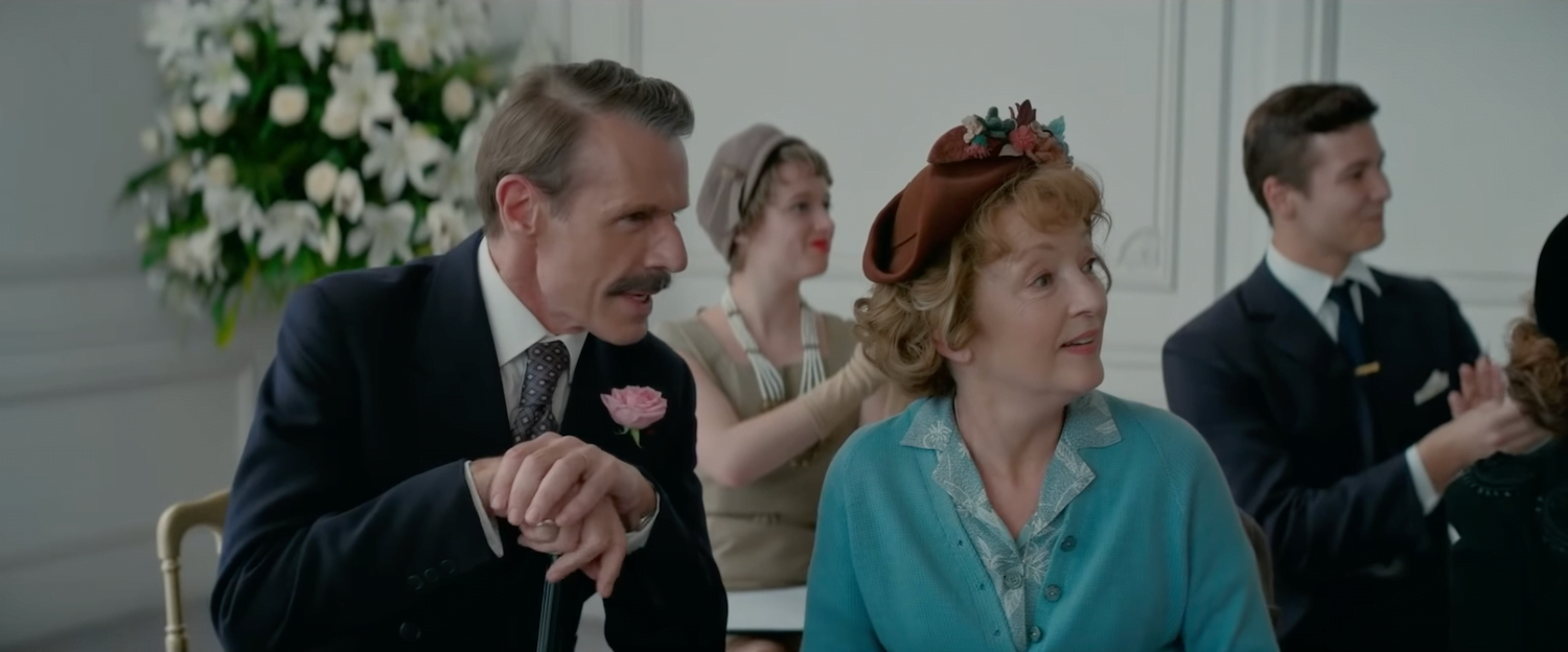 This story, based on a novel called Mrs. 'arris Goes to Paris, has been filmed before, including a TV movie that starred Angela Lansbury, Diana Rigg, and Omar Sharif! I don't have any experience with the book or the earlier adaptations, and this film isn't inspiring me to invest my time in them — so I'll leave it to other writers to consider how this compares to previous manifestations.