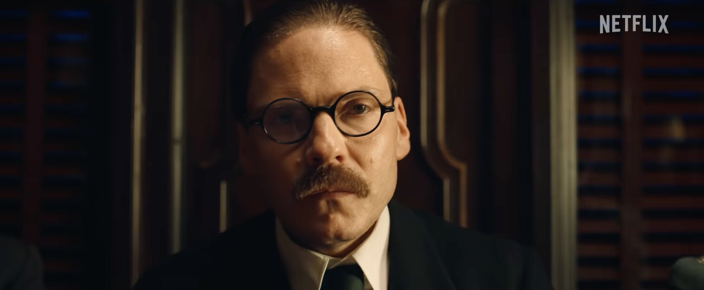 The only face familiar to me in this production is Daniel Brühl's. He plays Magnus Erzberger, the young and squirmy politician leading the German delegation appealing for an end to the slaughter. Thibault de Montalembert makes an impression as French Marshal Ferdinand Foch, who refuses to make it easy for Erzberger.