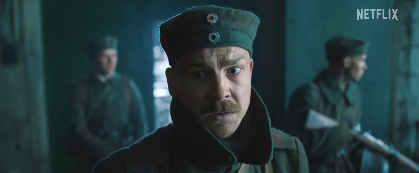 I've never read that novel, nor have I seen the famous American film adaptation that was released two years later — a milestone in feature filmmaking directed, appropriately, by Lewis Milestone. But I know both by their reputations for running counter to the cliches of most war movies. And, as I've developed quite an allergy to the way the genre often feeds destructive fantasies and glorifies violence, I've been curious. It turns out my suspicion that this one would be different was well-founded. This adaptation — the first German-made adaptation for the screen — is now streaming on Netflix, and it's an outstanding achievement of war-is-hell testimony.