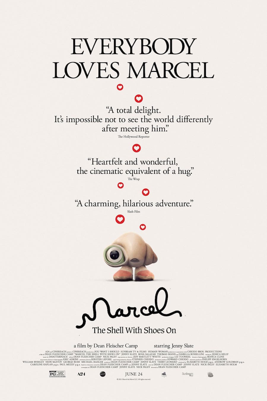 Synopsis via Letterboxd: “Marcel is an adorable one-inch-tall shell who ekes out a colorful existence with his grandmother Connie and their pet lint, Alan. Once part of a sprawling community of shells, they now live alone as the sole survivors of a mysterious tragedy. But when a documentary filmmaker discovers them amongst the clutter of his Airbnb, the short film he posts online brings Marcel millions of passionate fans, as well as unprecedented dangers and a new hope at finding his long-lost family.”