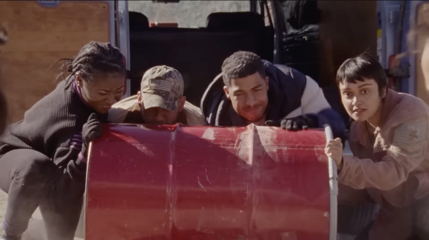 But a plan like this has a lot of moving pieces, and so they need a lot of help. Xochi brings her college friends Shawn (Marcus Scriber) and Theo (Sasha Lane) on board. (If you'd told me that this takes place in the AHCU — the American Honey Cinematic Universe — and Sasha Lane is still playing the same character from that Andrea Arnold film, I might have believed you.) Shawn shares Xochi’s strong convictions, but for Theo it’s even more personal: she’s angry about the chemical causes of the cancer that is killing her. (In a world designed to favor big business over human decency, how’s a young woman like Theo to afford healthcare?) And then there’s Alisha (Jayme Lawson), who signs on reluctantly for Theo’s sake, mostly out of loving loyalty for her dying girlfriend.