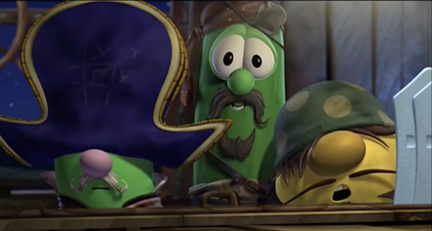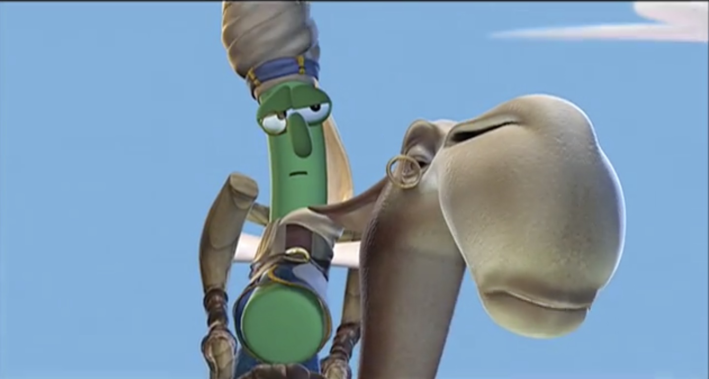 Most of the best Bible stories are complicated and fraught with troubling questions. Just as we do here with movies, grownup Christians wrestle with those stories, with the evil portrayed there and the glimmers of good, seeking out the meaning and the light there. But for youngsters to understand Bible stories, the stories need to be simplified with as little dilution of the meaning as possible. So I don't have any problems with VeggieTales' departures from Scripture. The way the storytellers draw in some details from the Bible story and then alter others is part of the fun.