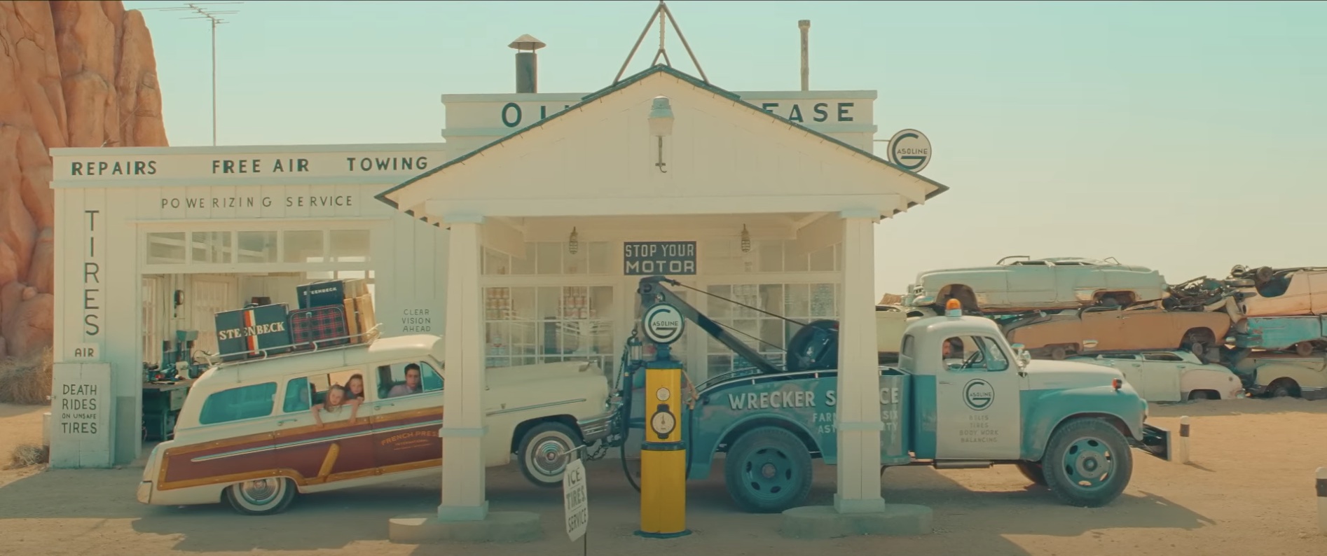 The play is about Augie Steenbeck (Jason Schwartzman), a recently widowed war photographer who, driving across Arizona with his science-wiz son Woodrow (Eighth Grade’s Jake Ryan, a perfect young recruit for Anderson) and his three identical triplets (Ella, Gracie, and Willan Faris), suffers a breakdown (automobile and otherwise) on their way to Asteroid City for a junior science exhibition that Woodrow is competing in.