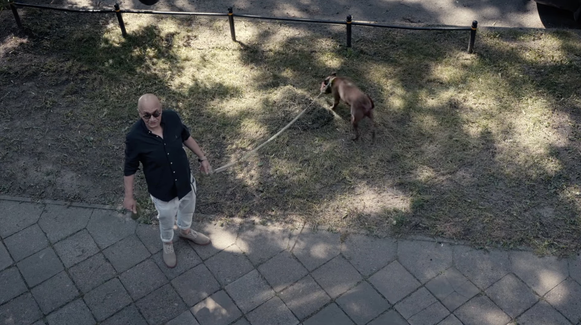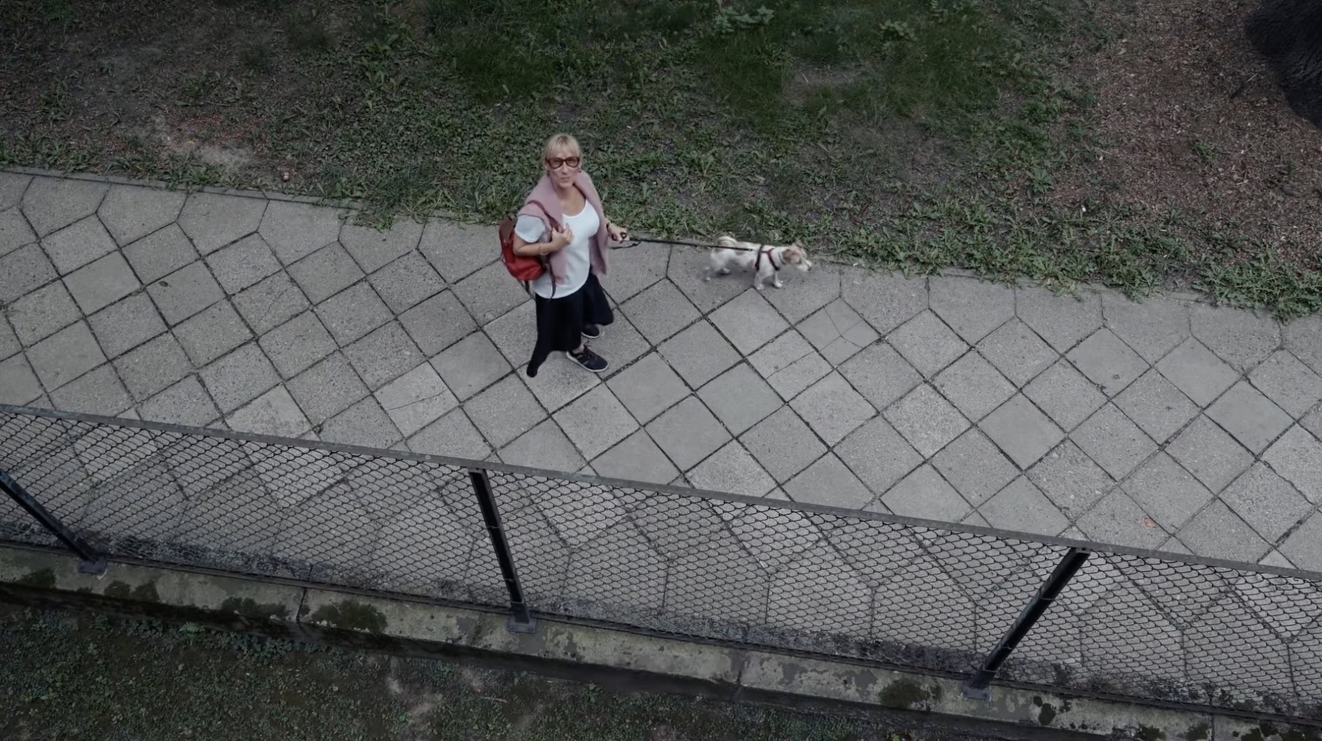 It seems like such an ordinary stoop on which a filmmaker might set up shop, but what transpires is remarkable. I kept thinking about Wim Wenders’s watchful angels over Berlin in Wings of Desire. (I know, I know — I say that a lot.) But think about it: Here, we can hover over unsuspecting Warsaw citizens and, if we’re lucky, catch them in candid confessions or unguarded flashes of temper or humor. We see representatives of every living generation; men and women in love; women grieving lost husbands or raging about their affairs; men struggling with being thrown out of their own marriages, and one grieving the loss of a male partner that he’d had to pretend was his brother; alcoholics grieving their addiction; ex-cons grieving their mistakes; dog walkers; and members of Łoziński’s own family.