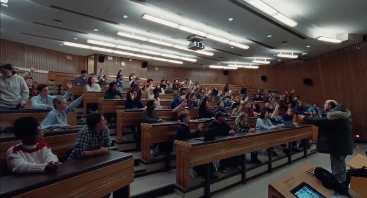 It’s a great twist, a brilliant premise for the age of memes and TikTok influencers. Paul is recognized by everyone, his world is turned upside down, and he’s appearing on talk shows. Why? For doing next to nothing. For appearing to do something. His bored and despairing students suddenly find him interesting.