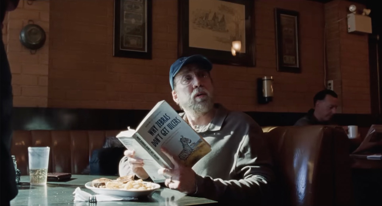 This ultimately underwhelming psychological thriller follows a frustrated academic, Paul Matthews (Nicolas Cage). Paul suffers from a sort of mediocrity that makes him a not-so-innocent bystander on the stage of life. He’s a ho-hum husband, an extremely uncool dad, a sort of “blank” in a world of exclamation points. His lack of agency doesn’t just make him uninteresting; it makes him annoying. He’d be lost if it weren’t for his longsuffering spouse Janet (Julianne Nicholson), who seems to still love him for who he is. Otherwise, Paul shuffles through every day yearning to be admired by his daughters, longing to be respected by his colleagues, and dreaming of being recognized for his studies on the psychology of ants. And he gets… wait for it… antsy when another academic infringes on what he considers his intellectual territory.
