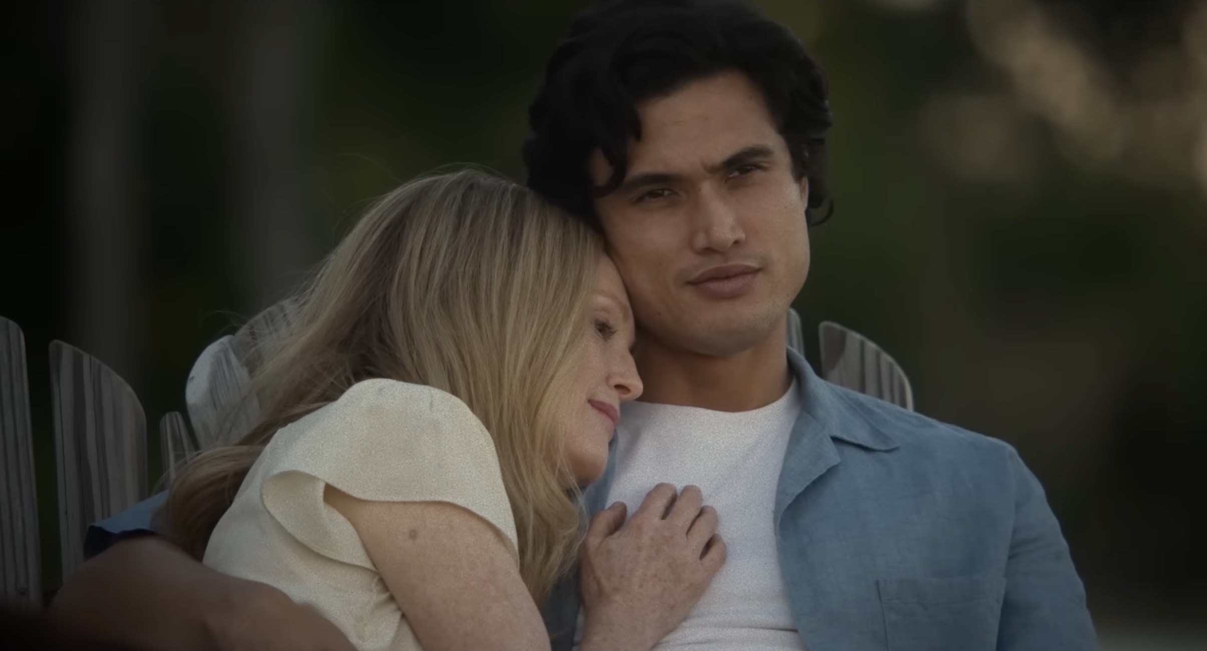 Haynes’s direction in May December is sly, strange, and surprising; he’s clearly excited by Burch’s inspired twist on a familiar story, how she takes the basic details of Letourneau’s case and complicates them with yet another layer of exploitation. Gracie (Julianne Moore), a former middle-school teacher who has served prison time, has been married to Joe (Charles Melton), her former student — that is, the victim of her abuse — for many years now. They are raising children together—their own, and children from Gracie’s previous marriage. As the film begins, they are welcoming a visitor to their home: Elizabeth (Natalie Portman), an actress who intends to play Gracie in a feature film, has won Gracie’s reluctant cooperation by promising to prioritize “the truth” over lurid sensationalism.