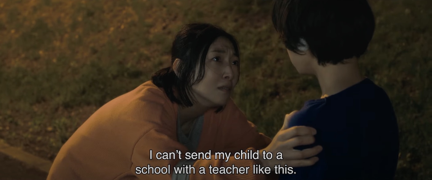We first follow the story of a widowed mother, Saori (Sakura Ando), as she tries to figure out whether or not her grieving son Minato (Soya Kurokawa) is telling the truth about being bullied by his fifth-grade teacher Mr. Hori (Eita Nagayama). She is achingly sincere and devoted to her son’s well-being. But what do you do if the school administration seems uncooperative, even though your boy has come home bleeding and claiming that he’s been told that his human brain was replaced with a pig’s brain? Both Ando and Kurokawa are win our hearts, if not our heads, right away.