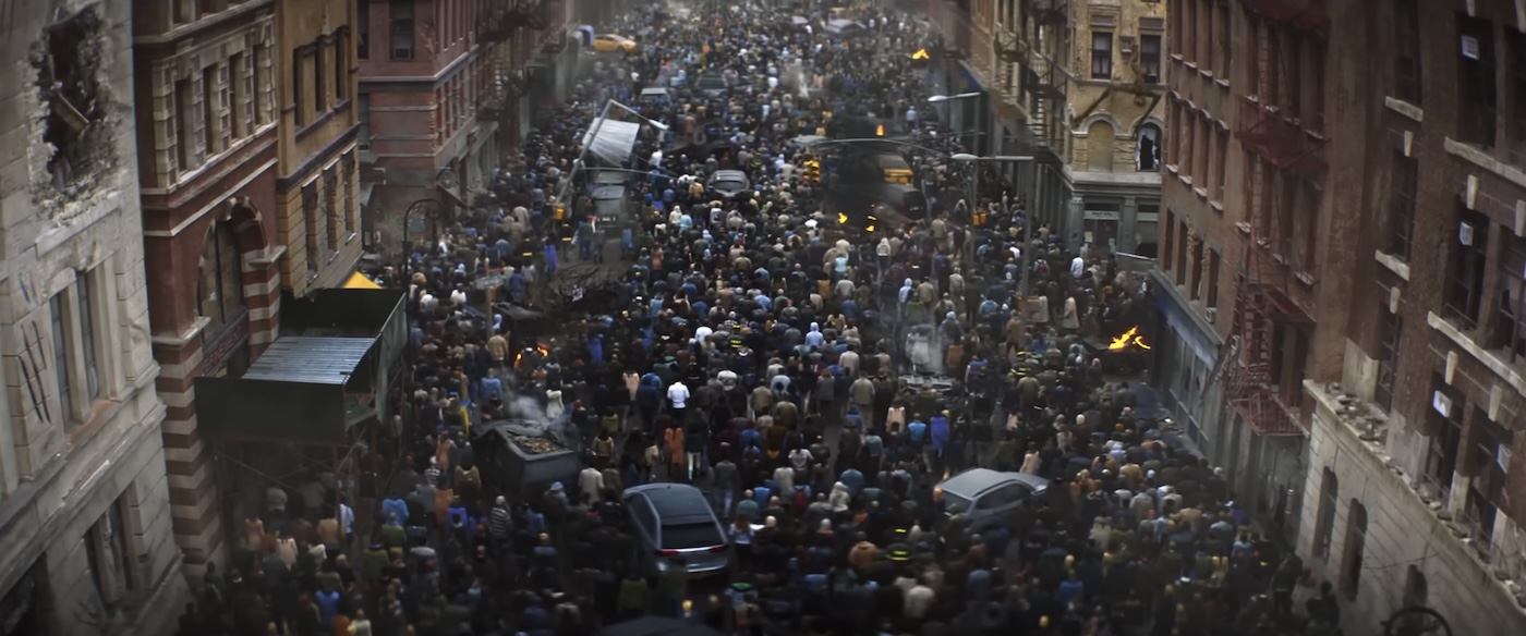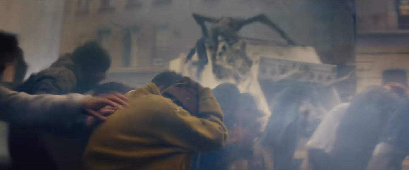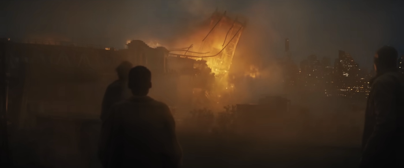 But downtown devastation movies have been a dime per dirty dozen for a long time now, and I'm beyond bored by them. If anybody ever comes up with a narrative in this franchise — or in this genre — that really engages me again, I will be astonished. This franchise, like so many others, so heavily prioritizes scenes of “shock and awe” devastation that it's hard to contemplate any implications the human drama might have. (Is the Sam and Frodo reference supposed to incline me to read this as a story about faithful companionship in a world erupting with orcs and destruction, and then a melancholy boat sailing away to the Gray Havens?)