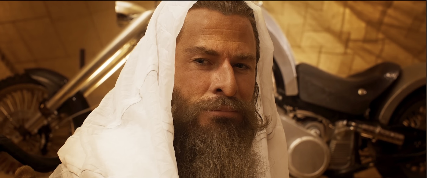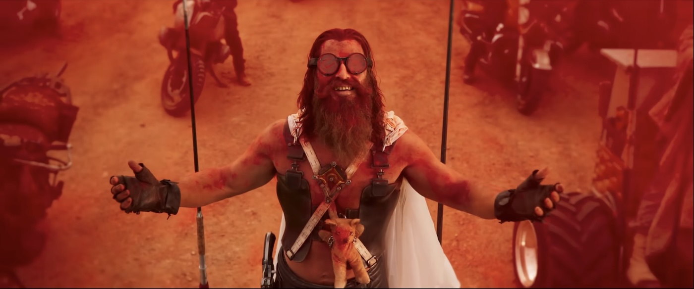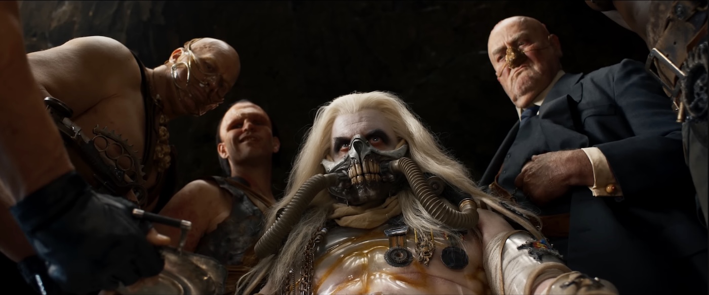 Another of Miller’s relevant critiques comes in the film’s treatment of Dementus as a sort of antichrist. Note how the first time we see Hemsworth onscreen, he’s cloaked — literally — in White Jesus iconography. I couldn’t help but find myself thinking how easily persuaded so many American evangelicals would be by Dementus, with his fondness for opening his arms in a cruciform pose and promising worldly prosperity, all while engaging in flagrant violence against anyone who gets in his way. (In view of how the film concludes with a perverse reimagining of the Eucharist — "This is my body. Take, eat." — I think Miller is going out of his way to lampoon what American evangelicals have made of Christianity.)