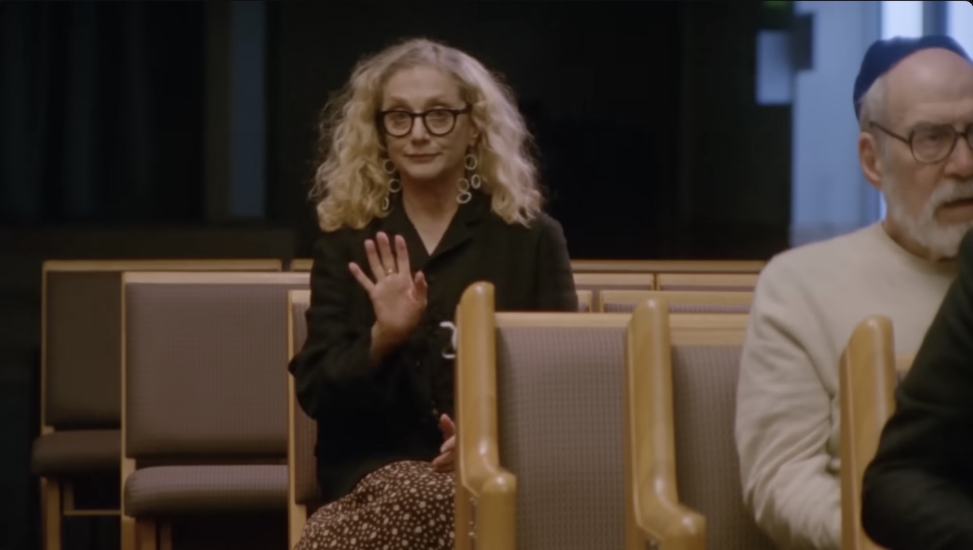 But one day, his childhood music teacher Carla (Carol Kane) appears out of the blue, and he reconnects with a formative influence from happier times — a teacher he respected, a grown woman who may have inspired something like a boy’s first crush. (I’m speculating about that, but I think the film suggests it.) And when Carla decides to show up as an unlikely student in his classes on bat mitzvah preparation, their student/teacher experience is flipped, and it brings them onto strange, new, and equal footing in which they now interact as peers, as friends, and, perhaps… even more? Both Ben’s and Carla’s families and friends are perplexed by his fixation on this new companion (like Lars’s community is perplexed in Lars and the Real Girl). He certainly seems more comfortable with, excited by, and interested in Carla than in any of the young, single women his mothers and Rabbi Bruce (Robert Smigel) are lining up as candidates (just as Kumail’s family parades eligible prospects in front of him in The Big Sick).