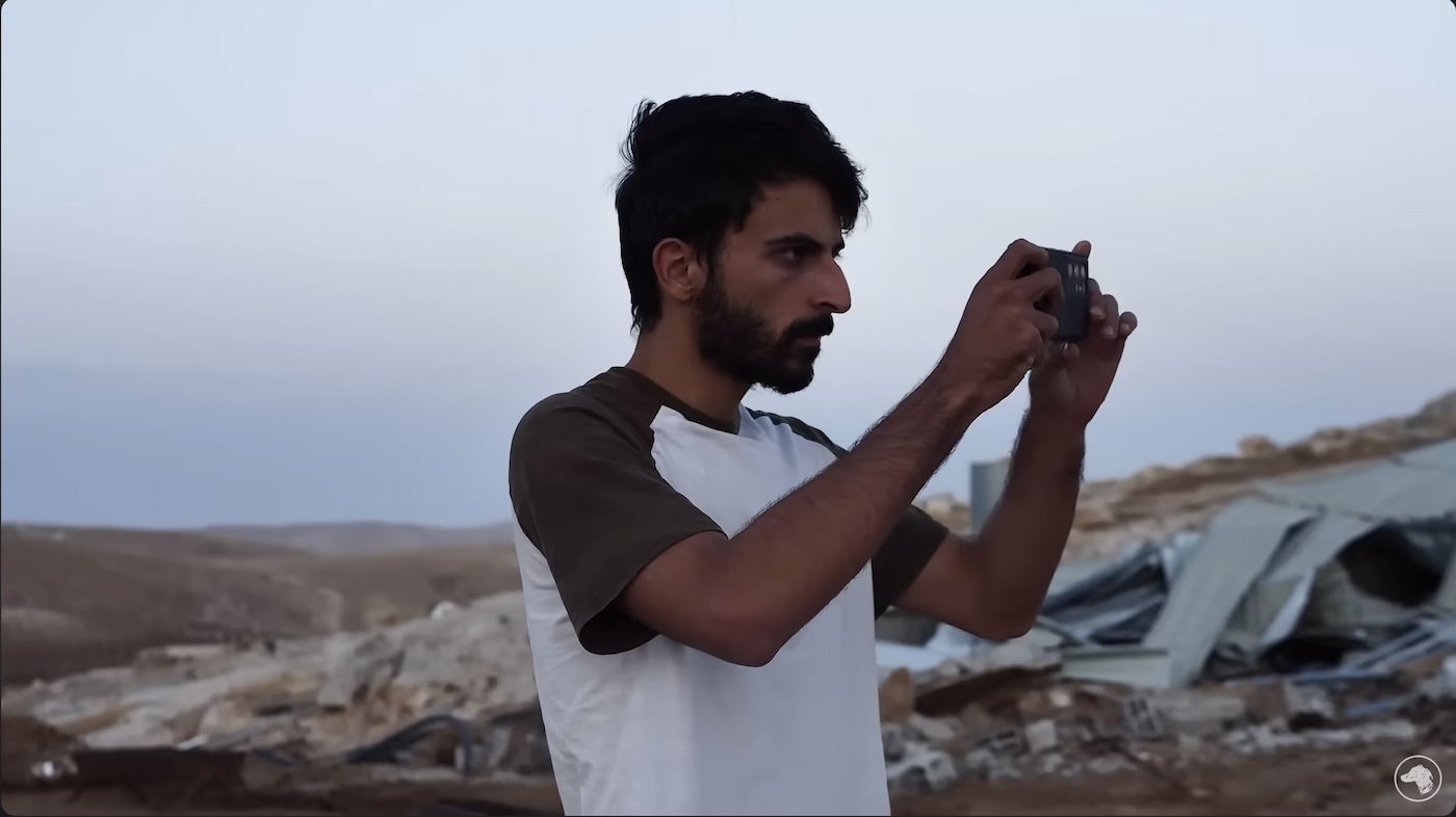 And the violence is undeniable. Anyone with a conscience will feel sick watching bulldozers and tanks move into this struggling neighborhood and start smashing homes, shelters for farm animals, and even active schools which are full of children until moments before the destruction. Mothers and children weep while Israeli soldiers throw all of their belongings out into the dust and then crush their homes. Large families flee into caves where they must survive in cramped spaces. Incredibly courageous villagers host non-violent protests even as the Israeli forces flaunt automatic weapons. We witness baseless arrests and abductions. We witness Israeli soldiers shooting protestors, leaving paralyzed one individual we’ve come to know as part of Basel’s family, and eventually killing another. We watch as Israeli forces take away their cars and their generators, and then cut off their resources for food and even water. (I had to keep reminding myself that I would feel similar rage if I were watching footage of Hamas carrying out terrorist attacks against Israelis — but then I would remember, again, that the Palestinians onscreen are not responsible for that, nor do they have sway with their cruel government.) The Israelis’ claim that they are seizing these Gaza territories “for military training” seems dubious at best (and it is negated by details revealed later in the film). Meanwhile, these villagers are told to leave their homes with “no other land” available to sustain their lives.