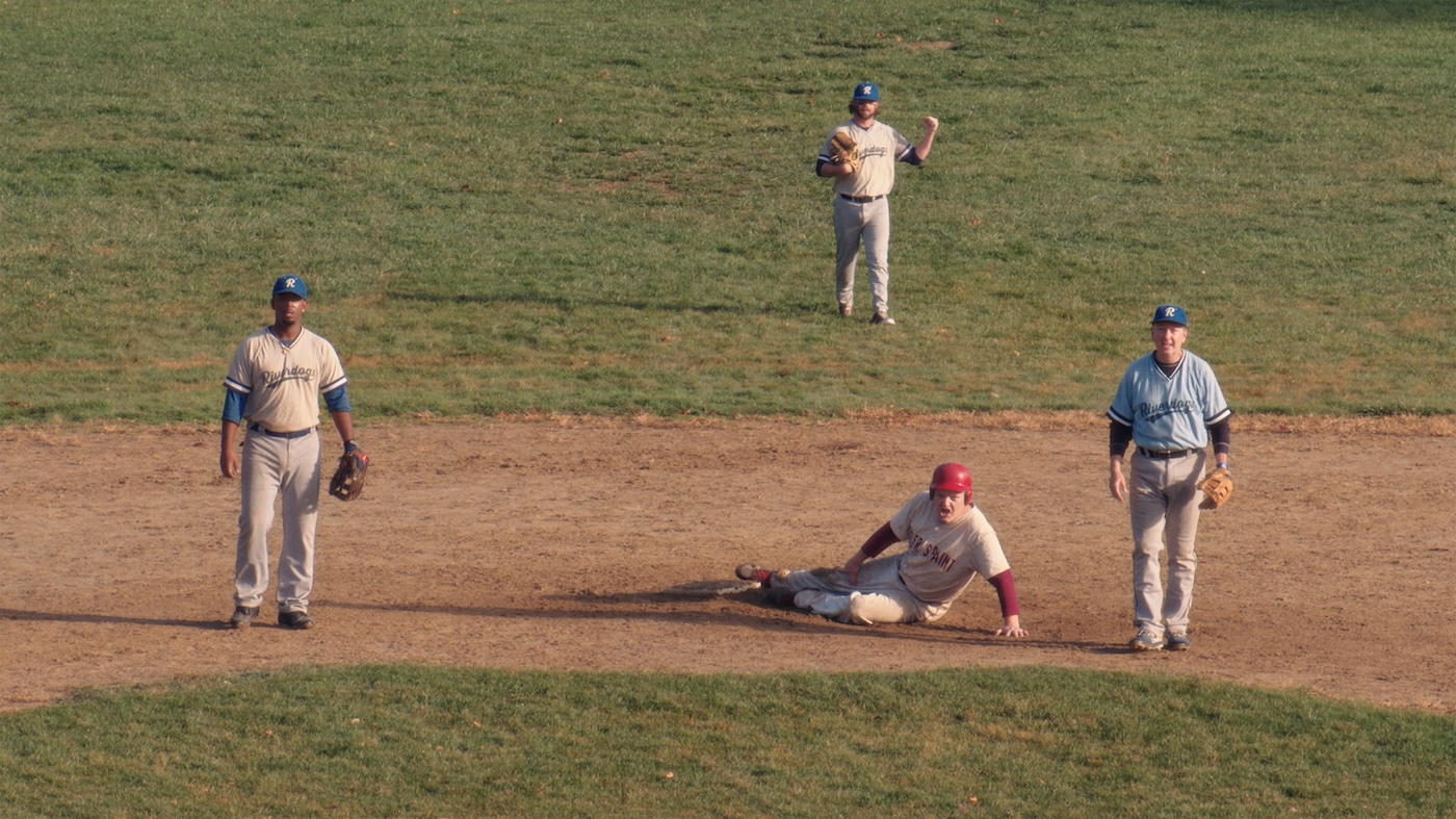 Eephus, set in Douglas, Massachusetts sometime in the 1990s, tracks the final amateur-league baseball game played by a community of middle-aged men—two teams, the Riverdogs and Adler’s Paint. They love this ritual, playing not for money or fame, but, yes, for the love of the game. They come to test themselves, past their prime, in the rigors of nine innings—pitching, batting, catching, boasting, reminiscing, ranting. They come for exercise, for escape, for companionship, for an audience.