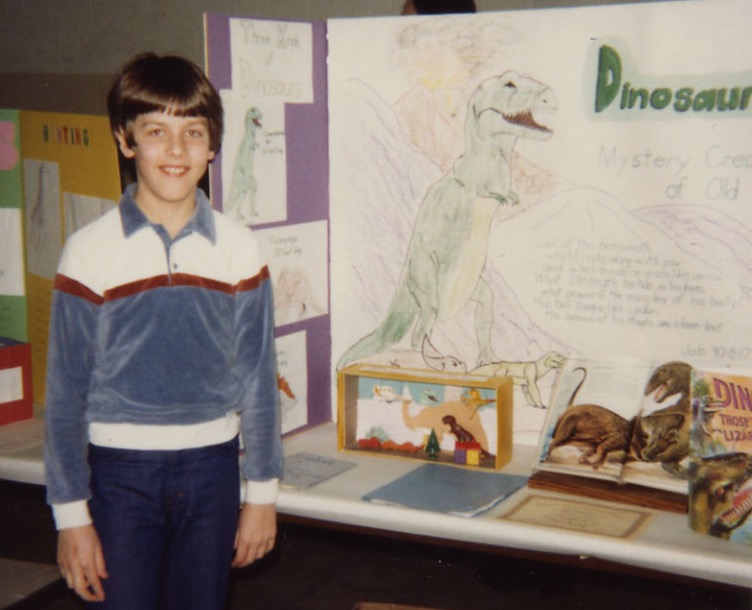 In many ways, I was like any other kid: Pictures of dinosaurs based on skeletal remains and fossils fascinated me. I loved drawing my personal favorites—T-Rex, of course, but Triceratops too. I even made dinosaurs the focus of my 6th-grade school report, “Dinosaurs: Mystery Creatures of Old!”, complete with hand-drawn mural and diorama!