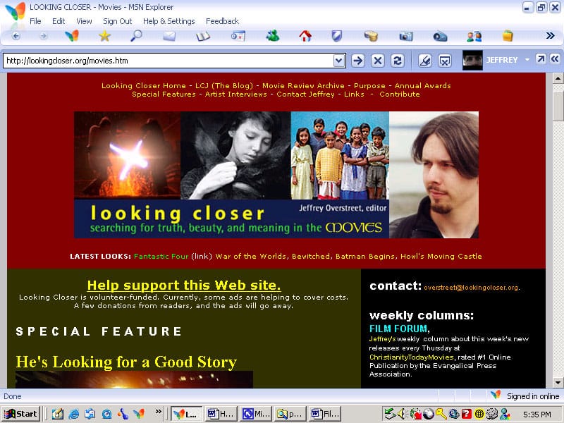 In 2001, my life at the intersection of faith and art changed dramatically. I had been publishing reviews on the early versions of my website, Looking Closer with Jeffrey Overstreet.