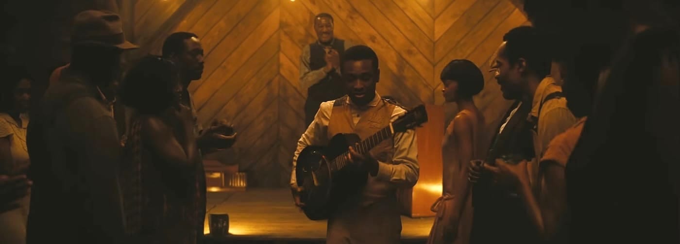 But this world, as envisioned by writer/director Ryan Coogler (the filmmaker who brought us Black Panther and Creed), is fraught with peril. And artists are especially vulnerable there to all kinds of temptation and exploitation. Sammie, being Black in Mississippi, is in particular jeopardy. He’s vulnerable to temptations common to most men — yes, the liquor, the smoking, the gambling, the women who notice him (including Pearline, a particularly flirtatious married woman he finds irresistible). But he’s also vulnerable to exploitation. His cousins Smoke and Stack are infamous for their criminal enterprises, and they see in Sammie a potential attraction for their new business: a “juke joint” that will give the heavy-hearted Black community, weary from hard days in the cotton fields, a place to indulge in music, dancing, booze, and blues. What they don’t anticipate is just how much attention Sammie’s music will attract, drawing troublemakers to the joint like bears to a honeybee hive. They aren’t the only ones who see potential in Sammie’s power. Even the devil might want to do business with this blues man.